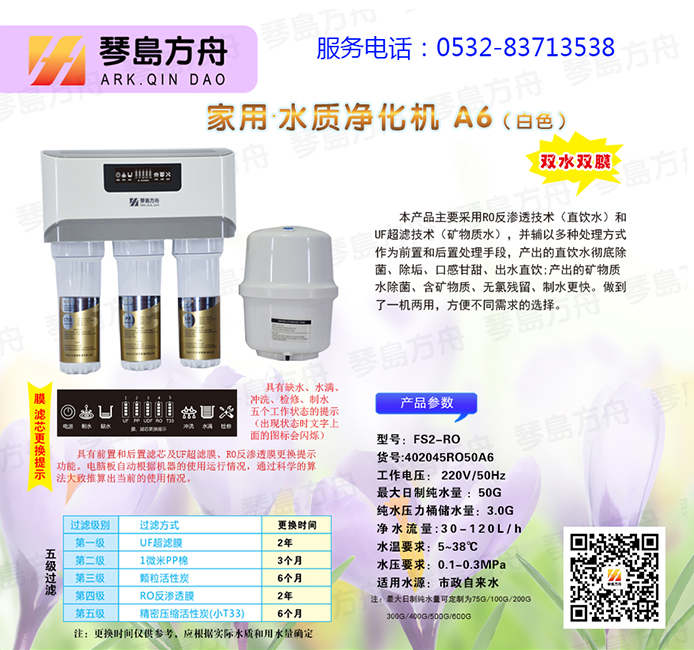 本產(chǎn)品主要采用RO反滲透技術(shù)(直飲水)和UF超濾技術(shù)(礦物質(zhì)水),并輔以多種處理方式作為前置和后置處理手段,產(chǎn)出的直飲水徹底除菌、除垢、口感甘甜、出水直飲;產(chǎn)出的礦物質(zhì)水除菌、含礦物質(zhì)、無級(jí)殘留、制水更快。做到了一機(jī)兩用,方便不同需求的選擇。